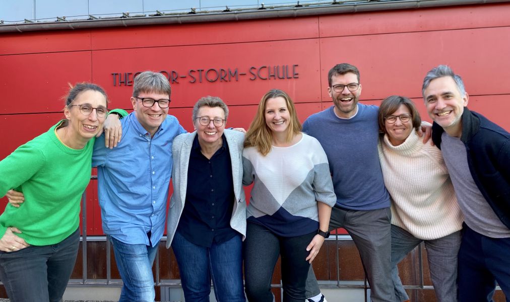 Antje Kuhnert (Koordinatorin, Didaktische Leitung und FIZ), Nils Peters (stellv. Schulleiter), Susanne Malinowski (Schulleiterin), Sünje Petersen-Andresen (Koordinatorin Orientierungsstufe), Dr. Jesko Oestergaard (Koordinator Mittelstufe), Ulrike Wittlinger (Koordinatorin Oberstufe), Jan Kanehl (Koordinator Schulentwicklung und Musikzweig)