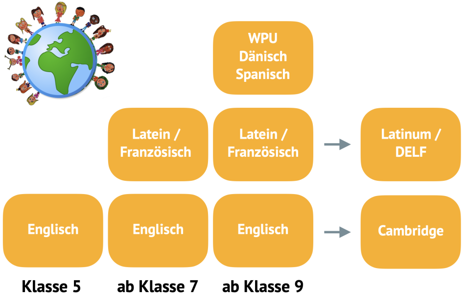 Bei uns kann man Englisch, Französisch, Latein, Dänisch und Spanisch lernen